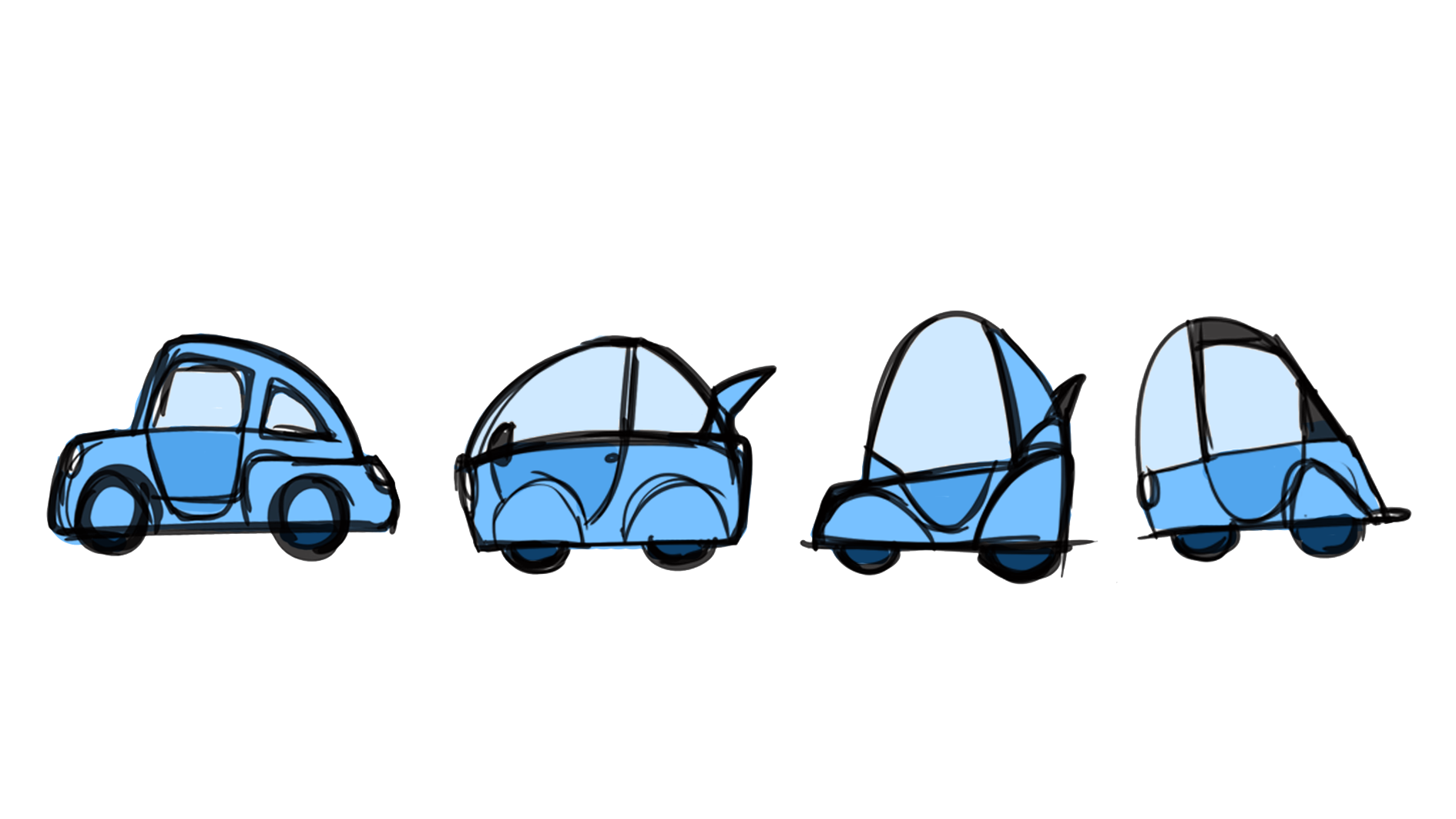 The first two sketches below focus on round cute forms while the latter two show a flatter and more angular approach.